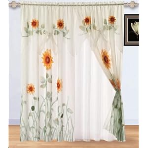 2 Panel of White Green and Yellow 3D Sunflower Window Curtain/drapes with Attach Valance and Sheer. We Compare and Choose Low Prices to offer You Here! Best Offers Today!